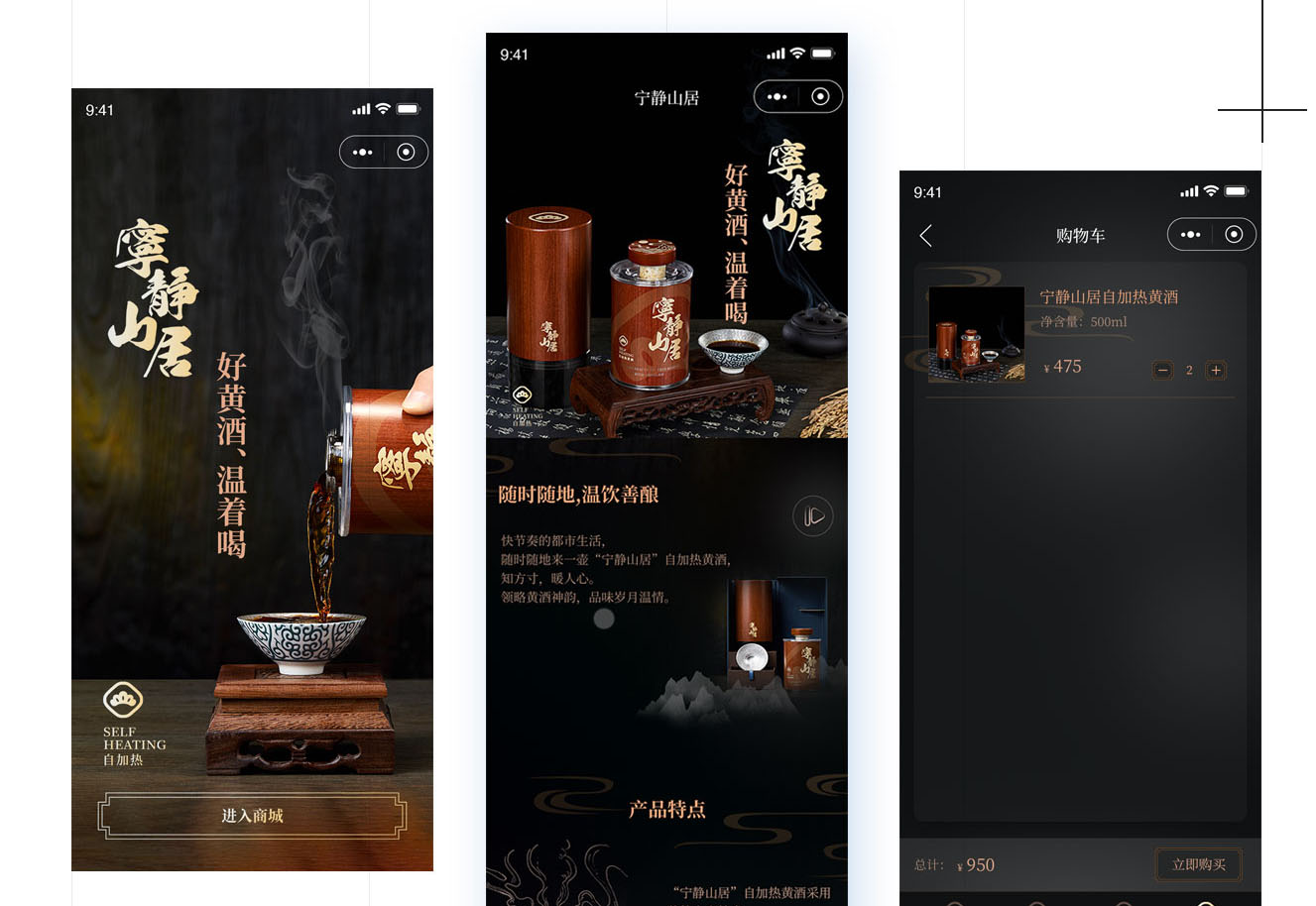 诗仙李白曾有诗云:“两人对酌山花开,一杯一杯复一杯。”细细品酌,诗中满是尽兴与开怀,海量者三五好友围炉夜话,一决雌雄。妇幼老者浅酌助兴,滋养脏腑。快节奏的都市生活,随时随地来一壶“宁静山居”自加热黄酒,知方寸,暖人心。领略黄酒神韵,品味岁月温情。